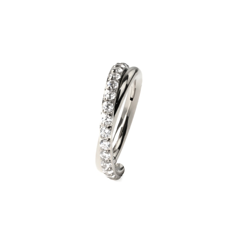 Dieser atemberaubende Ring ist sowohl schön als auch praktisch. Der Klappmechanismus macht das Einsetzen des Schmucks schnell und einfach; du musst nur das Segment aufziehen, es in dein Piercing einführen und es zudrücken, bis ein Klick erfolgt.