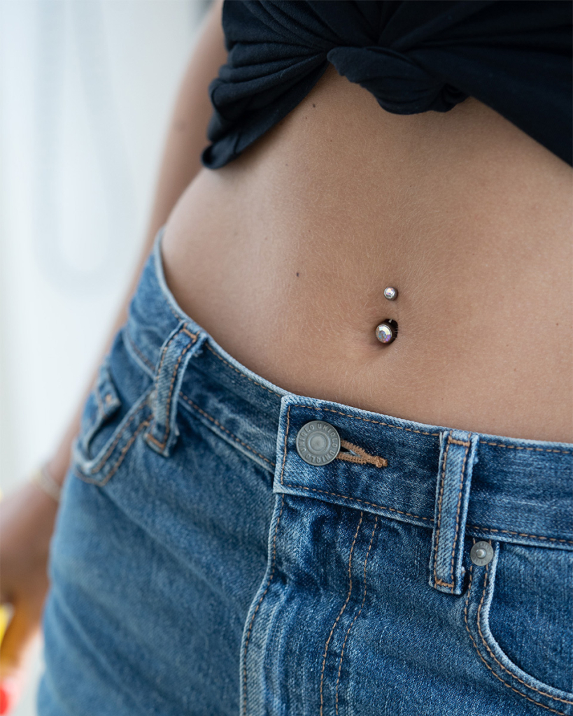 Dieses Bauchnabelpiercing besteht aus Titan, dem beliebtesten Material in der Piercingbranche.