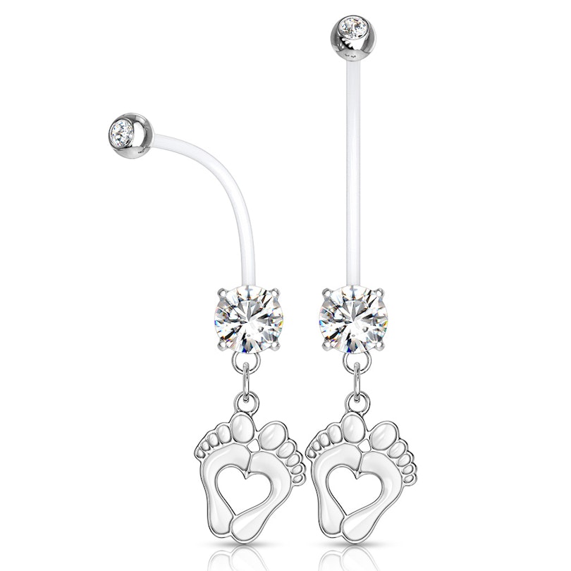 Name: Bauchnabelpiercing für Schwangere mit Babyfüßen und ausgestanztem Herz