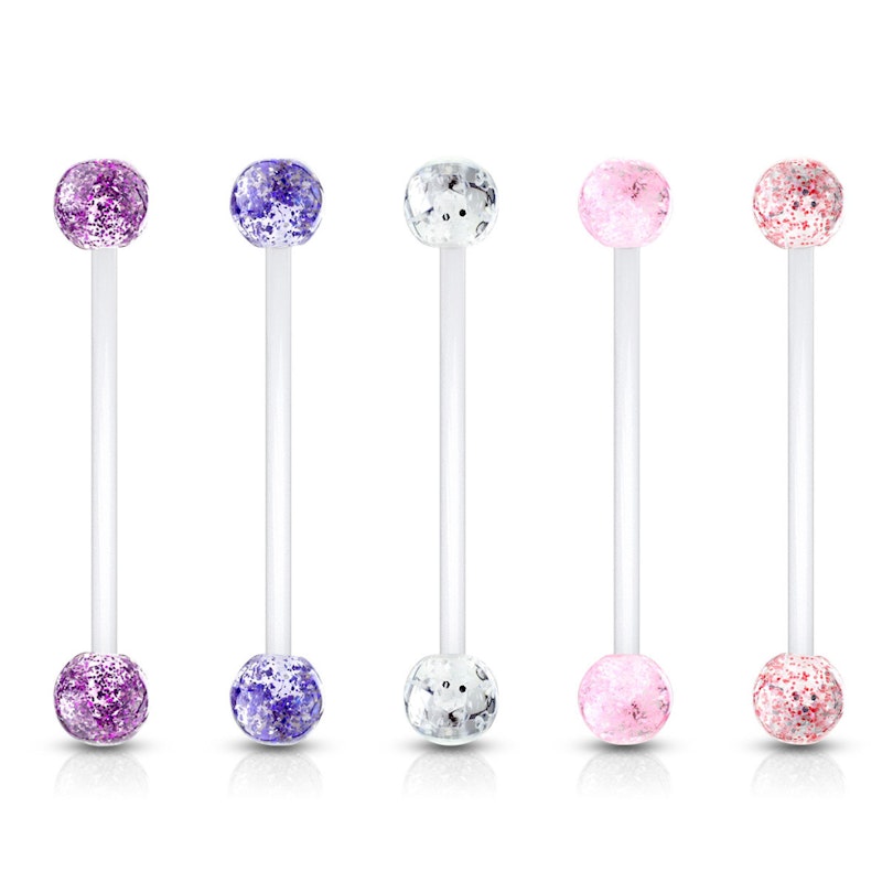 An jedem Ende des Schmucks befindet sich eine schöne Kugel aus Acryl. Die Kugeln messen 6 mm in der Kugelgröße und sind mit einem schönen Glitzermuster verziert. Die Farbe der Kugeln kannst du selbst auswählen, unter anderem sind blaue oder klare Glitzerkugeln erhältlich.