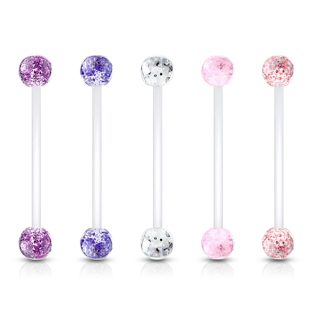 An jedem Ende des Schmucks befindet sich eine schöne Kugel aus Acryl. Die Kugeln messen 6 mm in der Kugelgröße und sind mit einem schönen Glitzermuster verziert. Die Farbe der Kugeln kannst du selbst auswählen, unter anderem sind blaue oder klare Glitzerkugeln erhältlich.