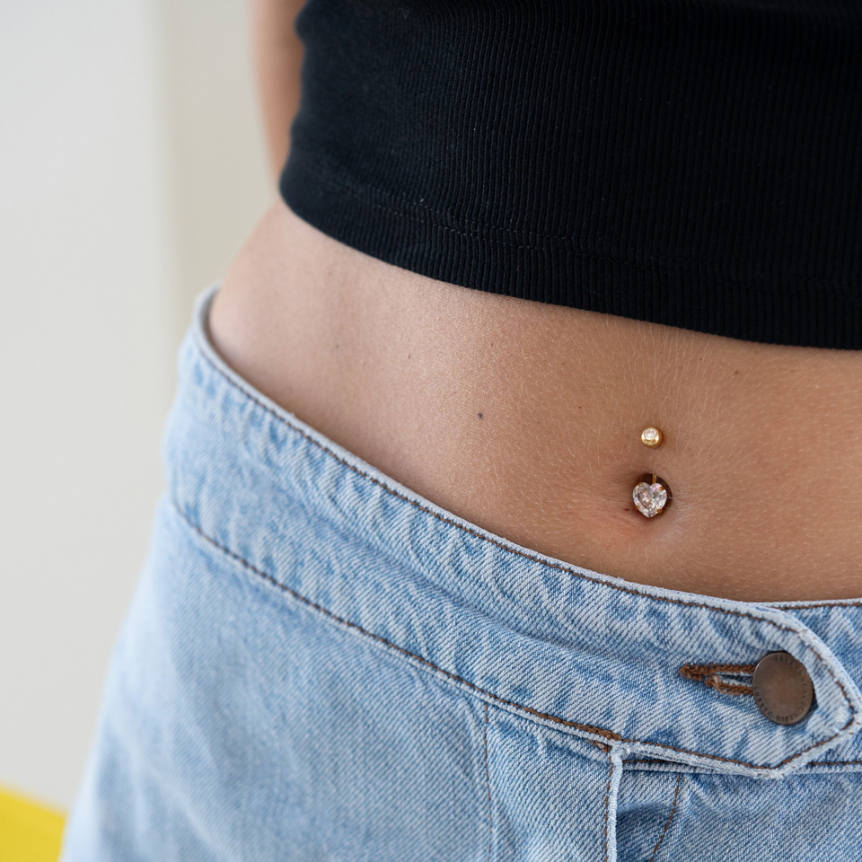 Bauchnabelpiercing in verschiedenen Farben mit Herzstein