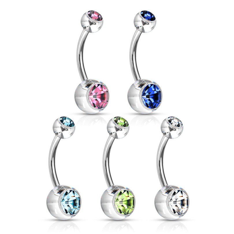 Hier haben wir ein wirklich schönes "Alltags-Schmuckstück" welches nicht nur schön ist sondern auch schlicht. Das Bauchnabelpiercing hat einen Stab aus Chirurgenstahl und zwei Schließkugeln. Beide Kugeln wurden mit einem schönen Stein versehen, dessen Farbe du selbst wählen kannst. Wir haben fünf schöne Farben zur Auswahl, von klassisch bis hin zu kräftigen Farben.
