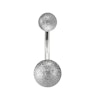 Dieses Bauchnabelpiercing glitzert und glimmert, sobald das Licht die schönen Kugeln berührt. Die Kugeln bestehen aus Chirurgenstahl, deren Oberfläche aber rau ist, so als wenn wie unter einem Hammer gelegen hätten. Das Geheimnis ist aber, dass die Kugeln sandgeblasen wurden, was eigentlich nur bedeutet, dass winzig kleine Sandpartikel mit einer hohen Geschwindigkeit auf die Kugeln geblasen wurden, was die Oberfläche so aufgeraut. So entsteht der Effekt, der sich am besten mit zu Staub gemahlenen Diamanten vergleichen lässt.
