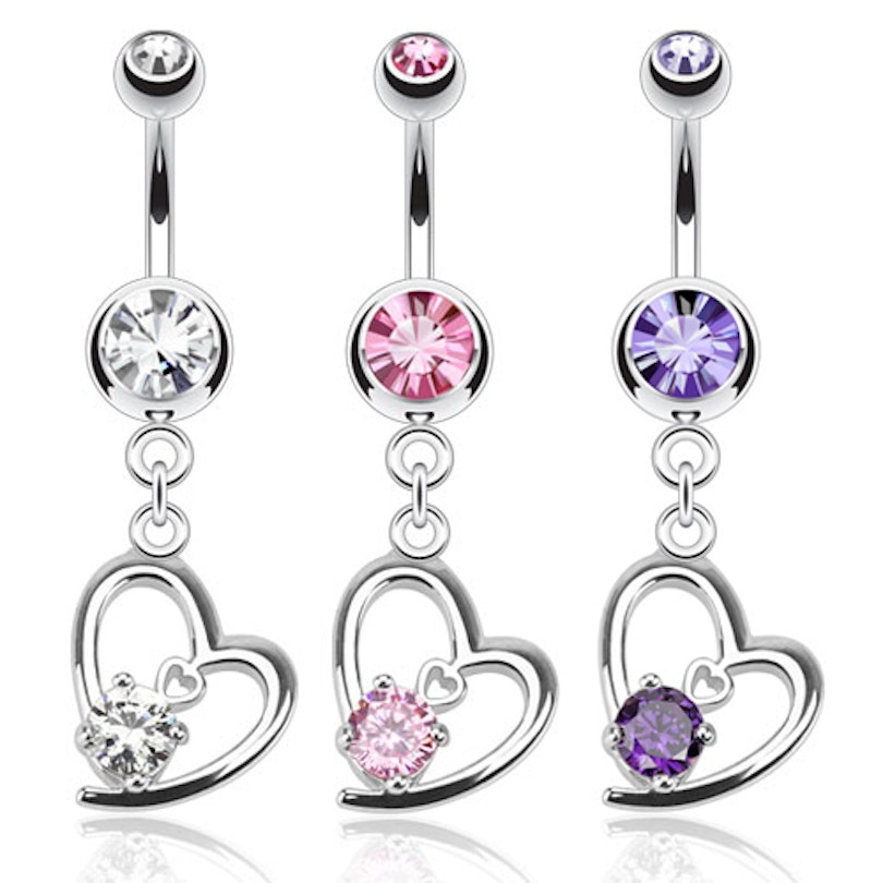 Bauchnabelpiercings und Herzen - eine gute Kombination seit eh und je. Dieses Modell ist da keine Ausnahme mit seinem schönen Herz im Anhänger. Im Herz selbst ist noch ein weiteres, kleineres Herz und ein Stein eingearbeitet worden. Die Farbe des Steines ist frei wählbar und wird sich ebenfalls in den beiden Kugeln des Schmuckstückes wiederholen.