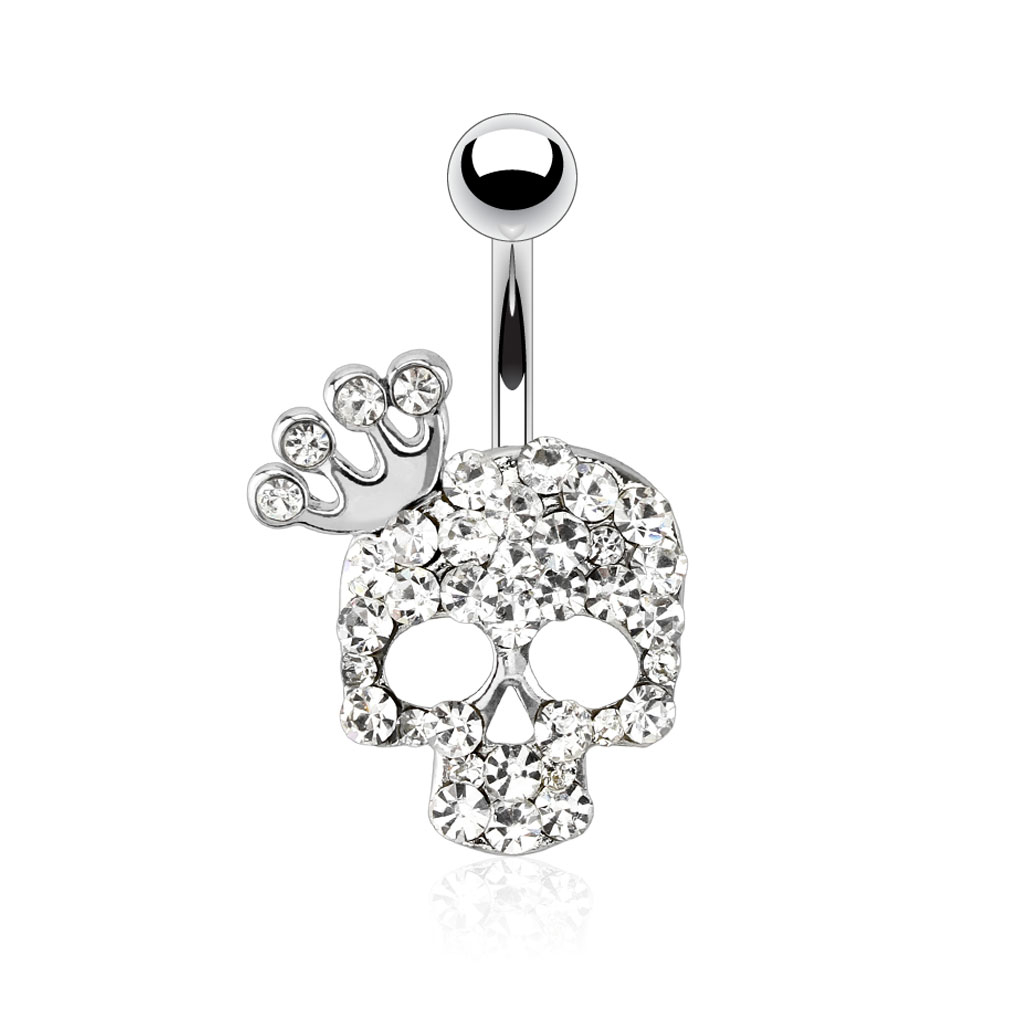Name: Bauchnabelpiercing mit einem steinbesetzten Totenkopf samt Krone
