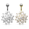Trägst du dein Bauchnabelpiercing voller Stolz und zeigst es gerne? Dann hast du jetzt die Chance dieses mit Stil zu tun und dieses prachtvolle und bemerkenswerte Bauchnabelpiercing mit der großen Blume aus funkelnden Steinen zu bestellen.