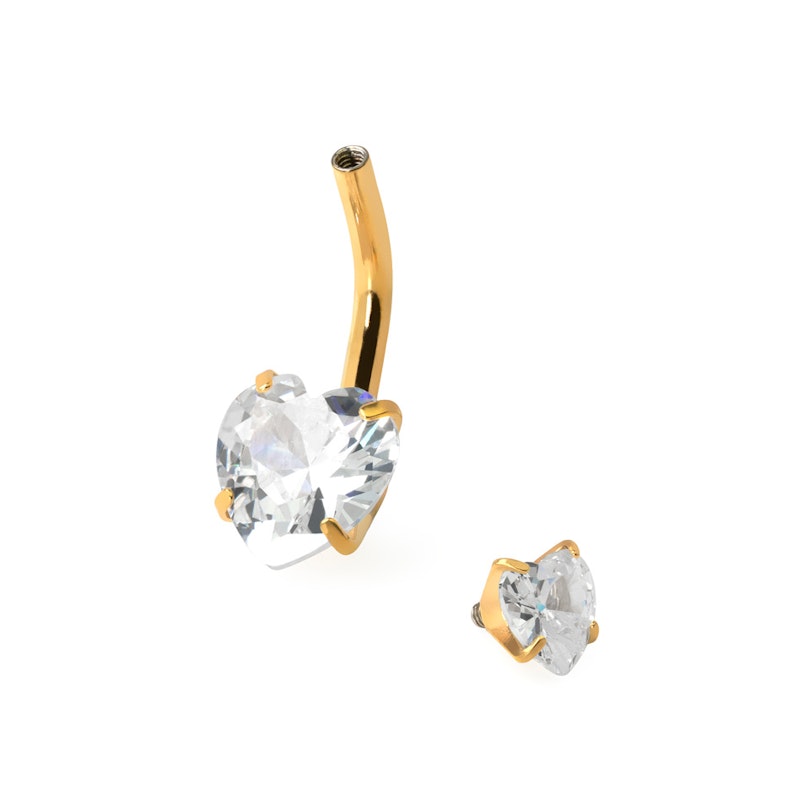 Aber das ist noch nicht alles, denn du kannst die herzförmigen Edelsteine auch in der Farbe deiner Wahl haben. Schau dir die verfügbaren Optionen an und gestalte diesen hübschen Bauchnabelring ganz nach deinen Vorlieben.