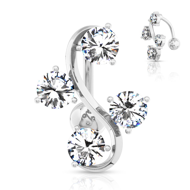 Name: Bauchnabelpiercing mit vier versetzten Steinen
