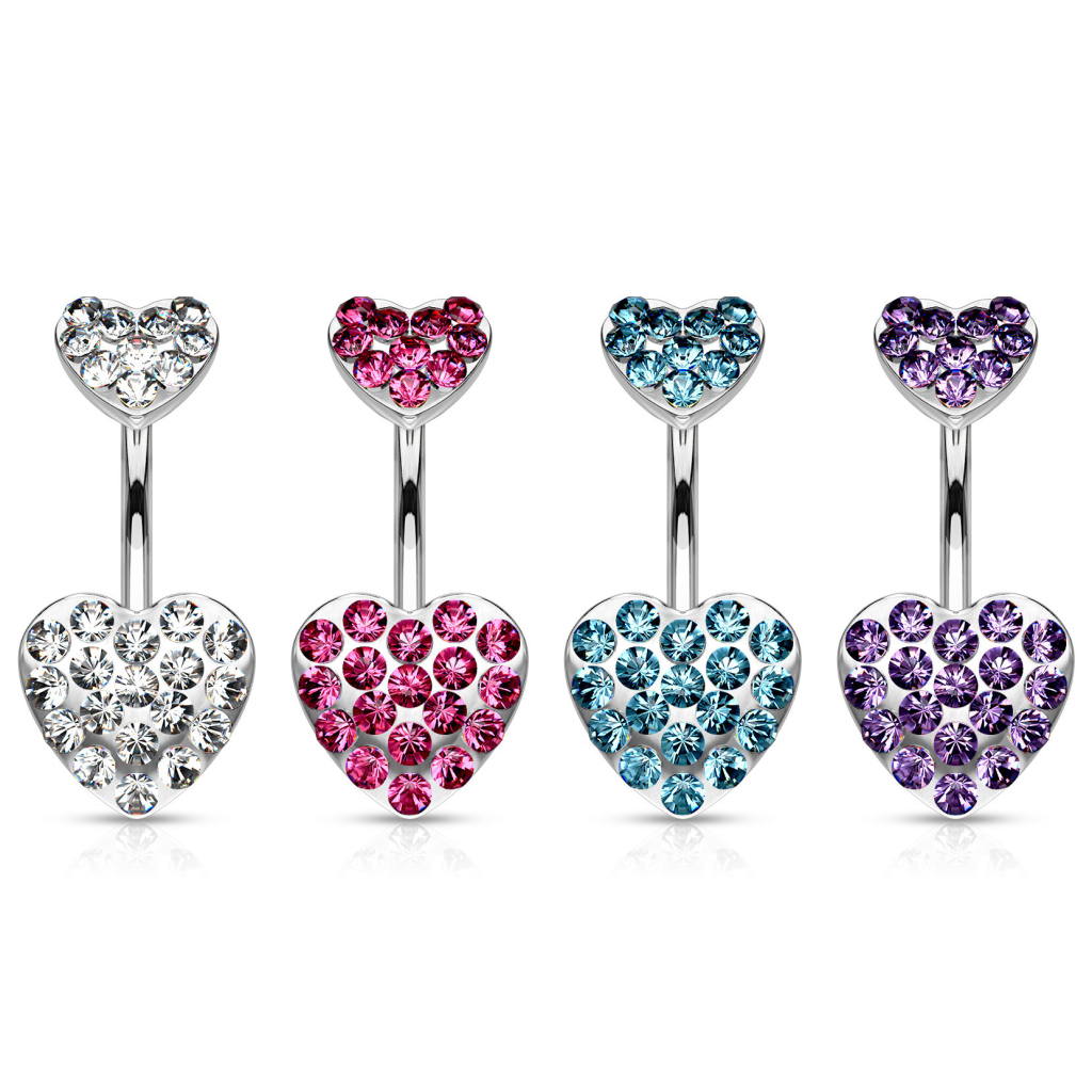Der Schmuck wurde aus chirurgischen Stahl hergestellt und hat einen 10 mm langen Stab in der Mitte. Die beiden Kugeln wurden durch zwei süße Herzen ersetzt, die mit vielen kleinen Steinen eng besetzt wurden. Durch den Facettenschliff, werden diese Steine jedes Licht aus allen Winkeln reflektieren, so daß dein Nabel glitzern und glimmern wird. Du kannst dieses Schmuckstück in fünf verschiedenen Farben bestellen, alle sind gleich schön und es hängt nur von deinem persönlichen Geschmack ab.