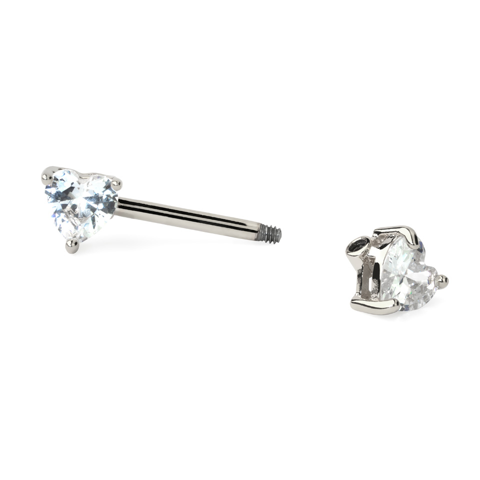 Dieses süße Brustwarzenpiercing aus Chirurgenstahl wurde an jedem Ende mit einem Herzförmigen Stein verziert. Dieser Schmuck bietet viele Individualisierungsoptionen, somit kannst du sowohl die Farbe der Steine als auch die Farbe des Stabs auswählen. Den Stab kannst du beispielsweise in gold oder rotgold- und die Steine zum Beispiel in rot, hellblau und klar erhalten. Einer der herzförmigen Steine kann abgeschraubt werden, somit kann der Schmuck leicht und schnell eingeführt werden, woraufhin der Stein wieder angeschraubt wird. Der Schmuck hat eine Stabstärke von 1,6 mm und eine Länge von 12 mm. Somit kannst du nur die Farben des Schmucks selbst auswählen, die Maße sind in jeder Version gleich.