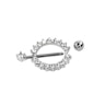 Dieses Schmuckstück wird auch gerne "Nippelrounder" genannt, weil es einmal komplett um die Brustwarze herum geht. Die Kante des Schildes ist mit vielen schönen, klaren Steinen übersät und der dazugehörige Stab/Stecker wird mit einem schönen Stein abgeschlossen anstatt einer Kugel.