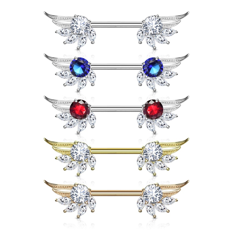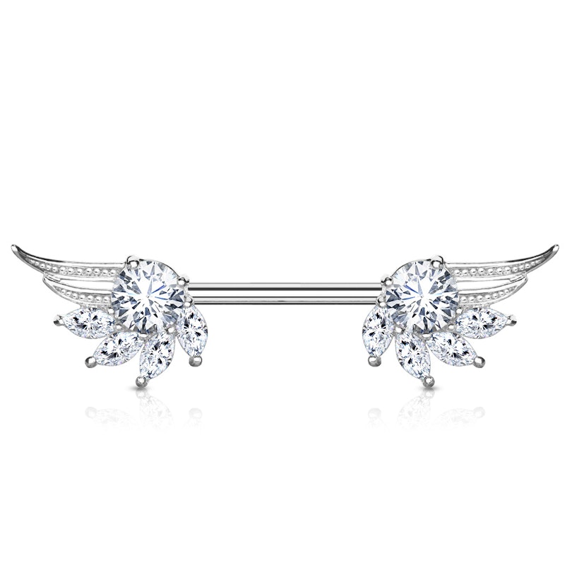 Brustwarzenpiercing mit Engelsflügeln und marquise geschliffene Steinen