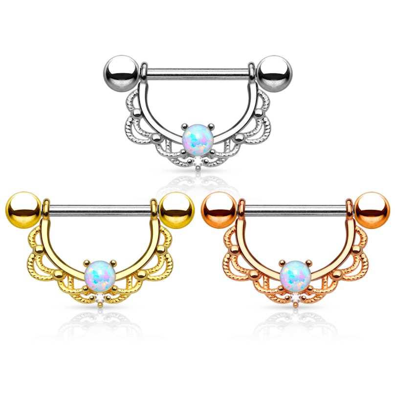 Name: Brustwarzenpiercing mit Filigranmuster und Opalstein