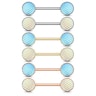 Die Schuppen bestehen aus einem Harz, welches so geformt wurde, dass es wie Drachenschuppen aussieht. Zusätzlich wurden die Schuppen so gestaltet, dass sie ein nuancenveränderndes Farbdesign haben. Das heißt, wenn du z.B. Rosa als deine Hauptfarbe wählst, kann man in den Schuppen auch ähnliche Farben sehen. Der Rest des Schmucks besteht aus Chirurgenstahl, einschließlich der beiden flachen Kugeln, auf denen die Drachenschuppen angebracht sind. Du hast die Möglichkeit die Farbe des des Schmucks selbst auszuwählen, hier sind unter anderem auch Gold und Rotgold erhältlich.