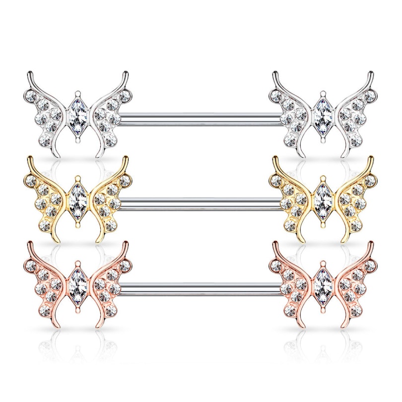 Brustwarzenpiercing mit Schmetterlingen und Steinen