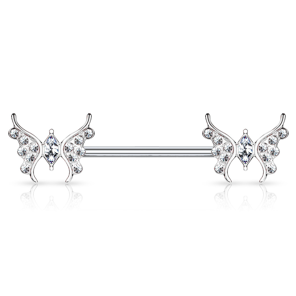 Brustwarzenpiercing mit Schmetterlingen und Steinen