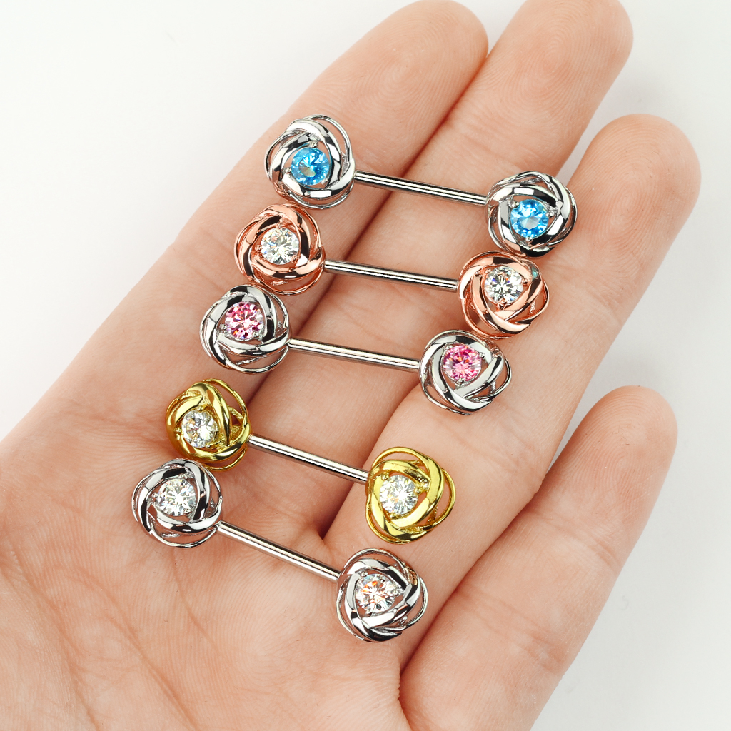 Name: Brustwarzenpiercing mit Steinen in Rosen