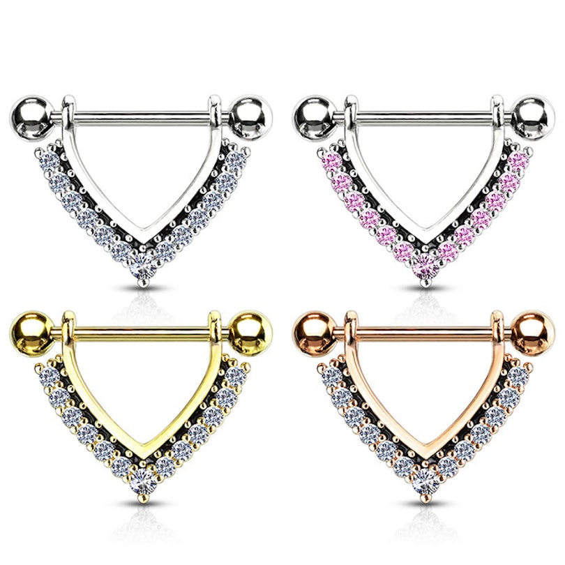 Brustwarzenpiercing mit steinbesetzter V-Form