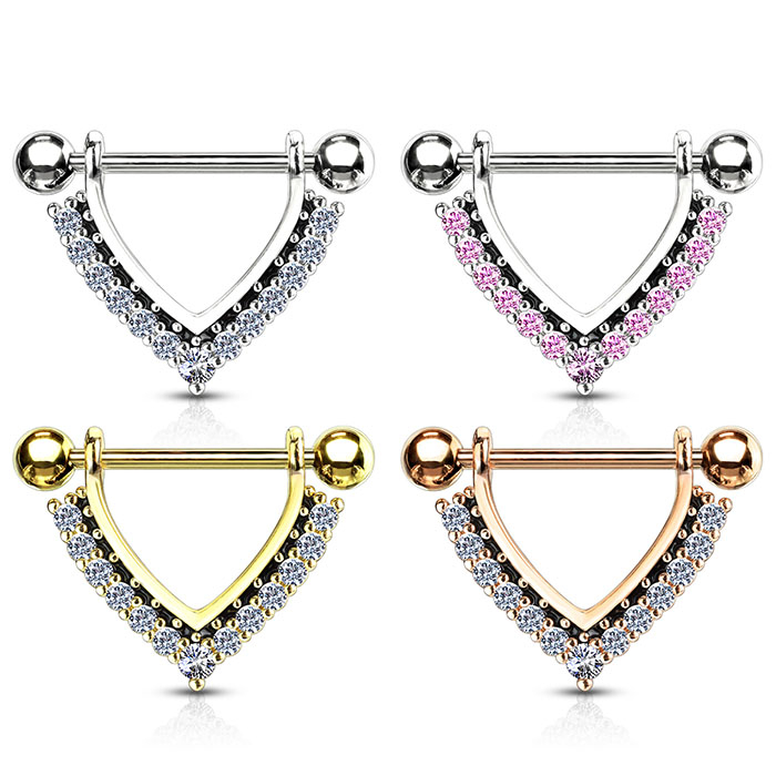 Name: Brustwarzenpiercing mit steinbesetzter V-Form