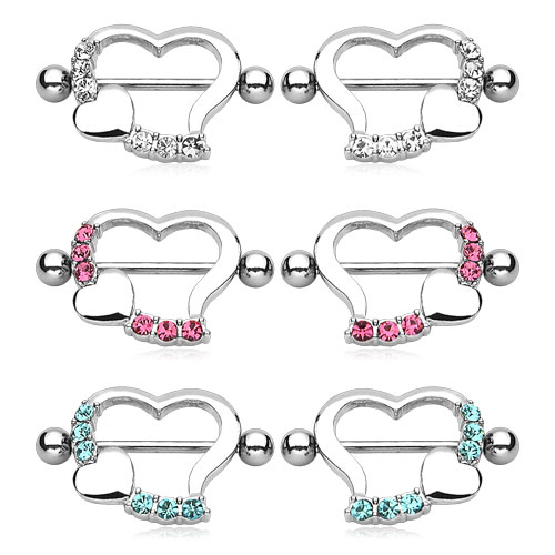 Name: Brustwarzenschilde in Herzform mit Steinreihe-Klar