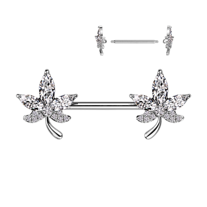 Brustwarzenstab mit funkelnden steinbesetzten Blättern