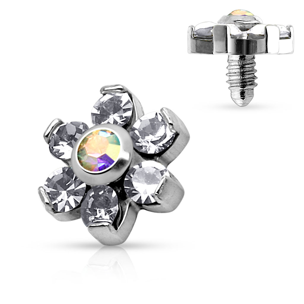 Name: Dermal Anchor mit einer Blume geformt aus Steinen