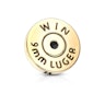Der Schmuck besteht aus Chirurgenstahl, damit ist der Teil gemeint, der in deine Base eingeführt wird und Kontakt mit der Haut hat. Die Patrone besteht aus Messing und ist mit einer Goldfarbe beschichtet, um der Optik einer richtigen Patrone zu entsprechen. Der Schmuck misst etwa 7 mm im Durchmesser - somit gibt es auch genug Platz für den eingravierten Text, den du auf dem Bild weiter oben sehen kannst.