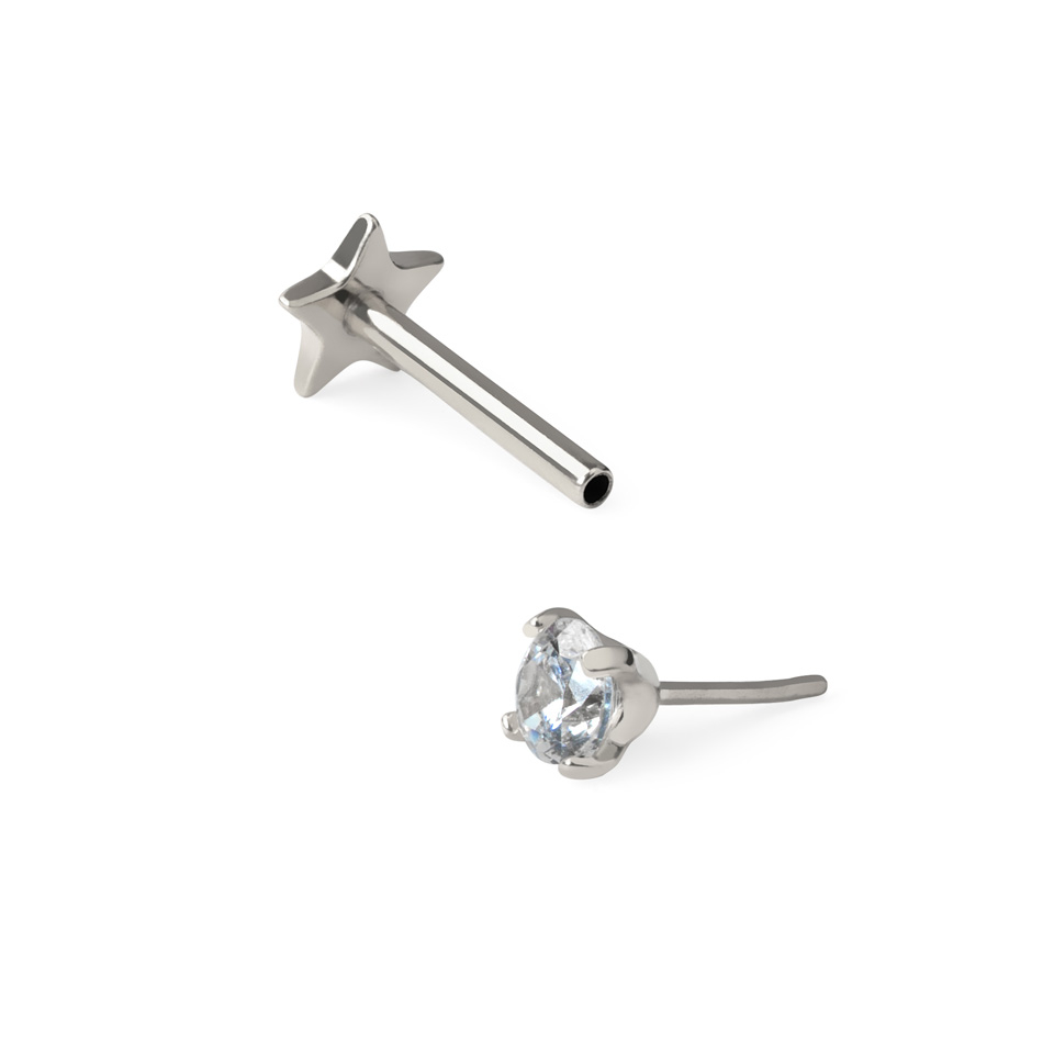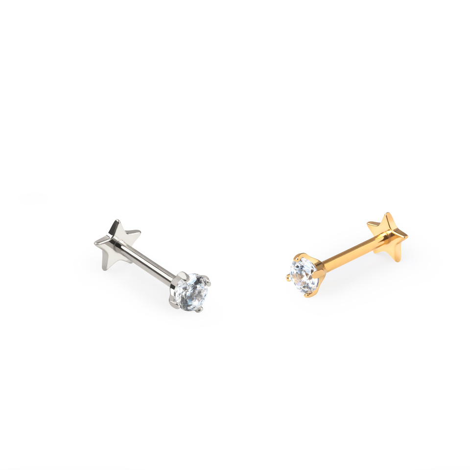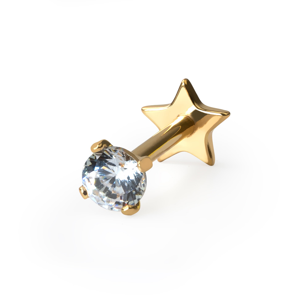 Doppelseitiges gewindeloses Titan-Labret mit flachem Sternrücken und Stein