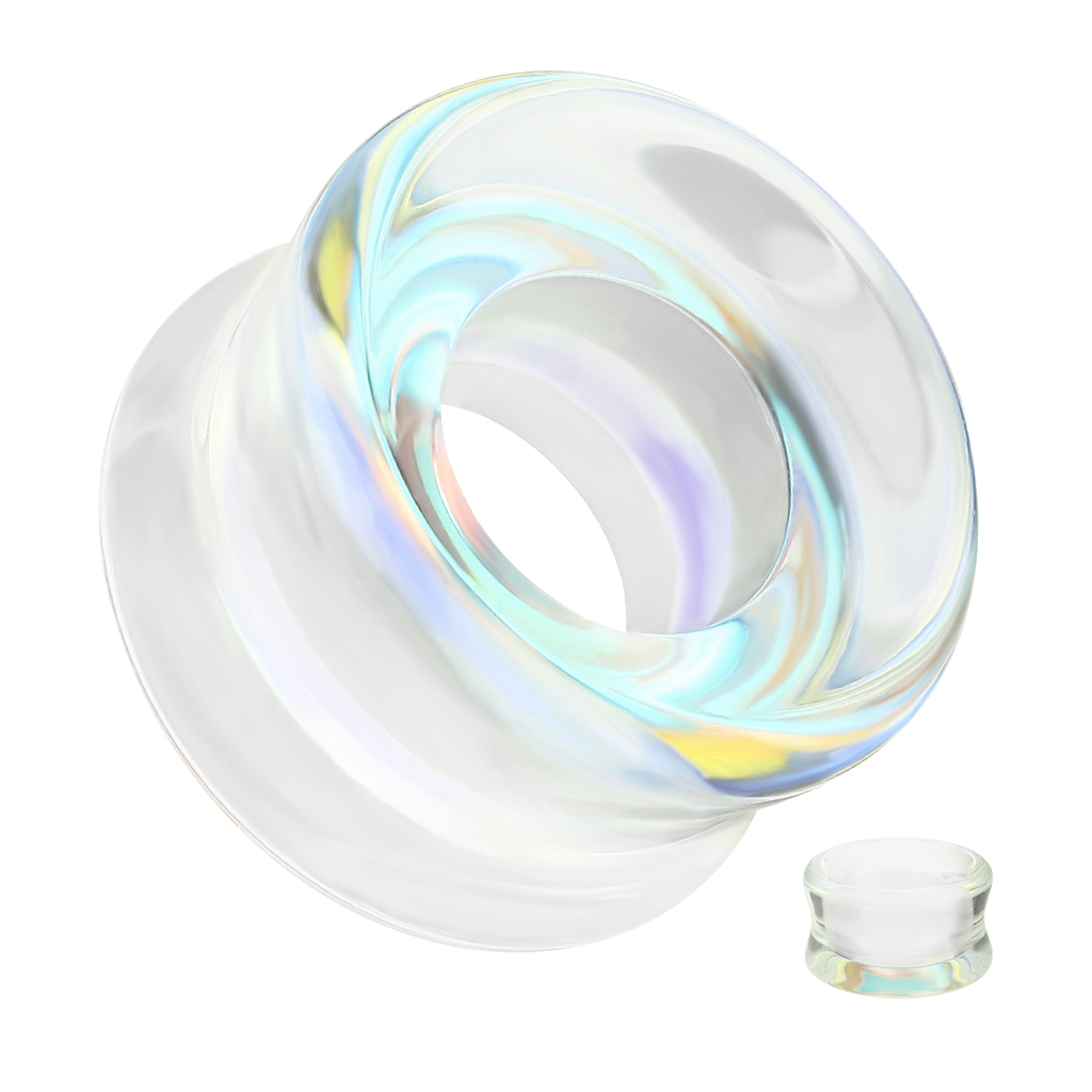 Nicht irgendein Tunnel. Dieser Doppel flare Tunnel aus Glas aus der Kollektion Bodymod Trend mit Aurora-Borealis-Effekt ist wie ein Nordlicht, nur für die Ohren. Die gläserne Oberfläche verleiht ihm ein angenehmes Tragegefühl, während die ausgestellten Ränder für einen sicheren Halt sorgen, ohne dass er ständig kontrolliert werden muss.