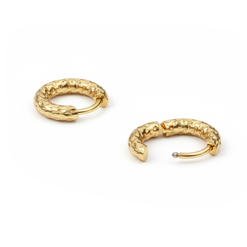 Lust auf ein Upgrade? Diese Ohrringe mit Hammerschlag-Effekt werden dein neues Lieblingsstück. Sie eignen sich optimal für deine Ohrläppchenpiercings und bilden die perfekte Basis, um deine Lieblingsstücke zu kombinieren. Und dank des Scharnierverschlusses sind sie einfach zu befestigen und super sicher. Müheloser Stil, garantiert.