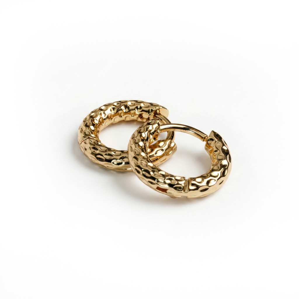 Ein Paar gehämmerter Huggie Ohrringe