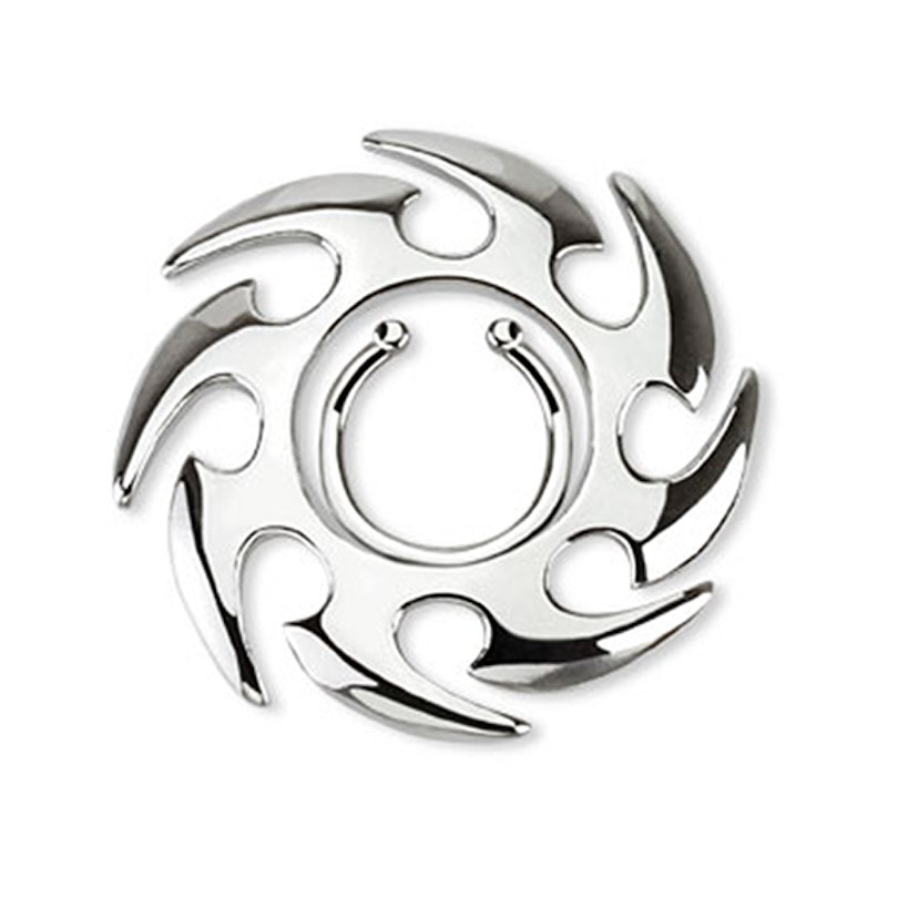 Hier hast du die Möglichkeit ein flottes Brustwarzenschild mit einer Tribal-Sonne im spiralförmigen Design zu bestellen. Das Brustwarzenschild besteht aus einer schönen Tribalsonne mit Flammen, die in dieselbe Richtung sprühen, was einen symbolischen Eindruck einer drehenden Spirale vermittelt. In der Sonne ist ein kleiner Ring, der an einem Ende offen ist. Diesen kleinen Ring setzt du an deine Brustwarze und klemmst ihn vorsichtig an den Enden zusammen, bist das Schild fest sitzt.