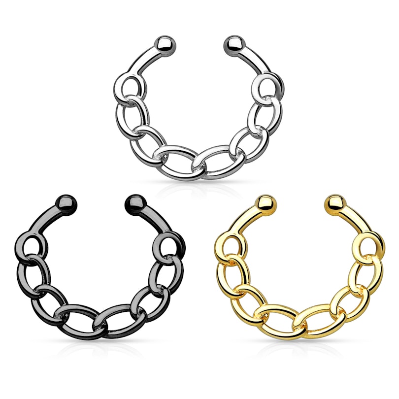 Wie siehts mal wieder mit einem frechen neuen Fake Septumpiercing für die nächste Tour ins Nachtleben aus? Hier kannst du nämlich eins der coolsten Fake Septumpiercings bestellen, daß kein Piercingloch voraussetzt. Der Schmuck ist wie ein Hufeisen geformt und hat jeweils eine Kugel an den Enden und musst nur um die Nasenscheidewand geklemmt werden. Die Kugeln sorgen dafür, daß es angenehm sitzt und trotzdem wie ein echtes Septumpiercing aussehen wird, da sie versteckt sitzen.