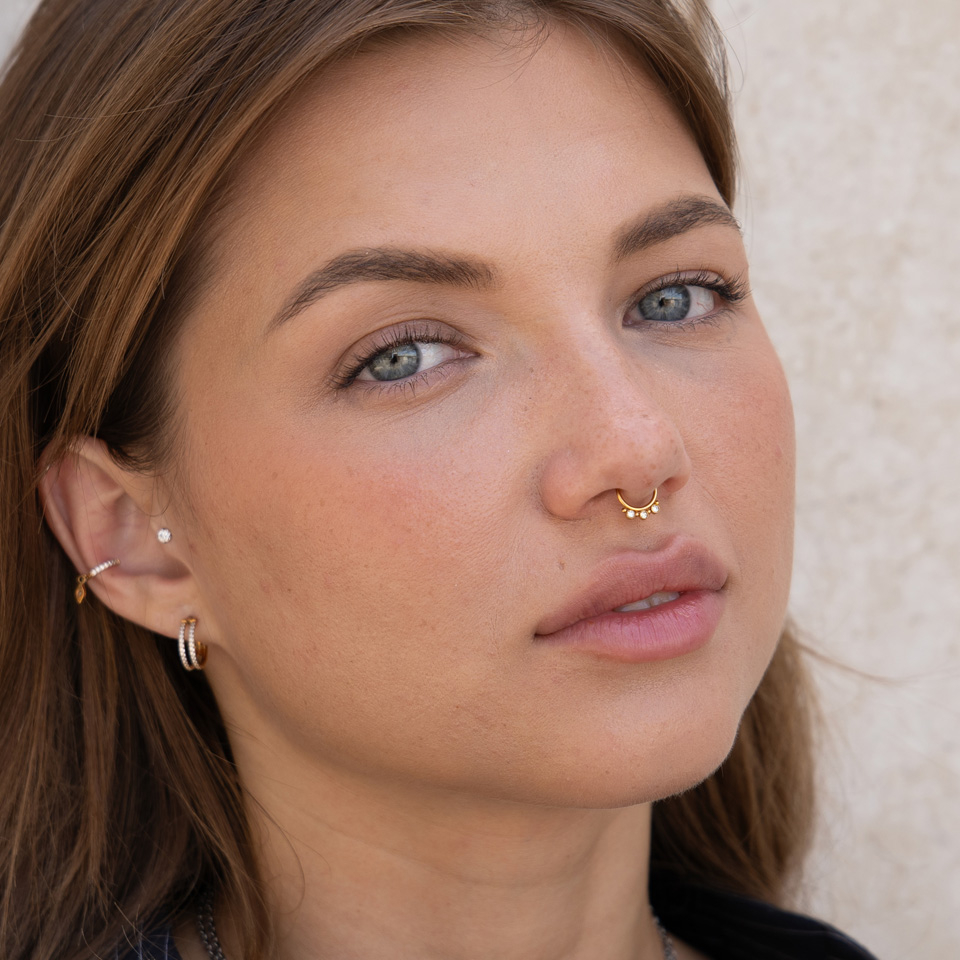 Fake Septumring mit drei Steinen und kleinen Perlen