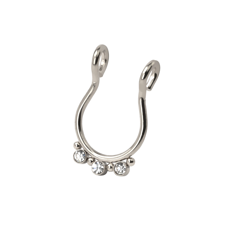 Name: Fake Septumring mit drei Steinen und kleinen Perlen