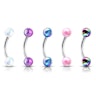Wie man auf dem Bild weiter oben erkennen kann, ist dieser gebogene Stab in mehreren Variationen erhältlich. Du kannst die Farbe für die beiden Kugeln des Schmucks natürlich selbst auswählen - einschließlich lila und blau. Hierbei erhältst du jedoch nicht nur die von dir gewählte Kugelfarbe. Die Kugeln sind nämlich metallisch beschichtet, dies erschafft in Kombination mit deiner gewählten Farbe ein schönes Farbspiel mit anderen ähnlichen Farben. Das heißt, wenn du beispielsweise die rosafarbene Edition des Schmucks wählst, kannst du auch ein leichtes Rot und andere naheliegende Farbnuancen auf der Kugel sehen. Darüber hinaus hast du auch die Möglichkeit, die Länge des Stabs zu wählen.