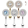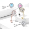 Der gebogene Stab des Schmucks besteht aus Chirurgenstahl. Der Stab wurde zusammen mit der Messingplatte beschichtet, auf welcher auch die Steine sitzen. Wenn du also beispielsweise die Goldversion auswählst, sind sowohl der Stab, das Messingteil als auch die untere Kugel mit 14 Karat Gold beschichtet - dies verleiht dem Schmuck neben seinem schönen Aussehen auch eine gewisse Exklusivität.