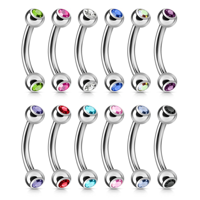 Möchtest du mal wieder ein neues Schmuckstück mit etwas Farbe und Leben in sich? Dann könnte dieser schöne gebogene Stabe mit einem schönen Stein an beiden Enden genau das sein was du suchst. Der gebogene Stab eignet sich besonders gut für Augenbrauenpiercings, Brustpiercings und auch teilweise für Intimpiercings. Der Schmuck wurde aus chirurgischen Stahl hergestellt und schimmert durch seinen blanken Look. Der Stil wurde einfach und zeitlos gehalten, so daß du es auch im Alltag immer tragen kannst.