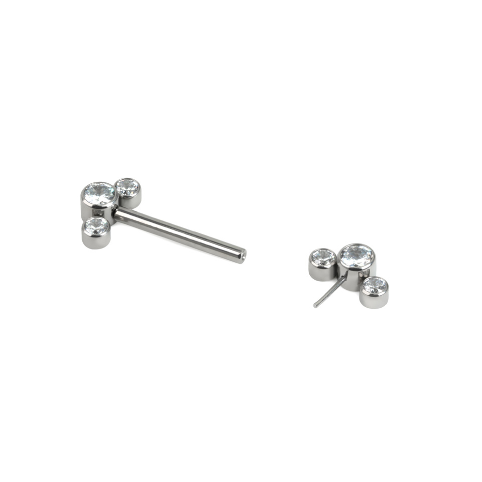 Name: Gewindeloses Brustwarzen-Barbell mit 3 CZ Bezel Endstücke