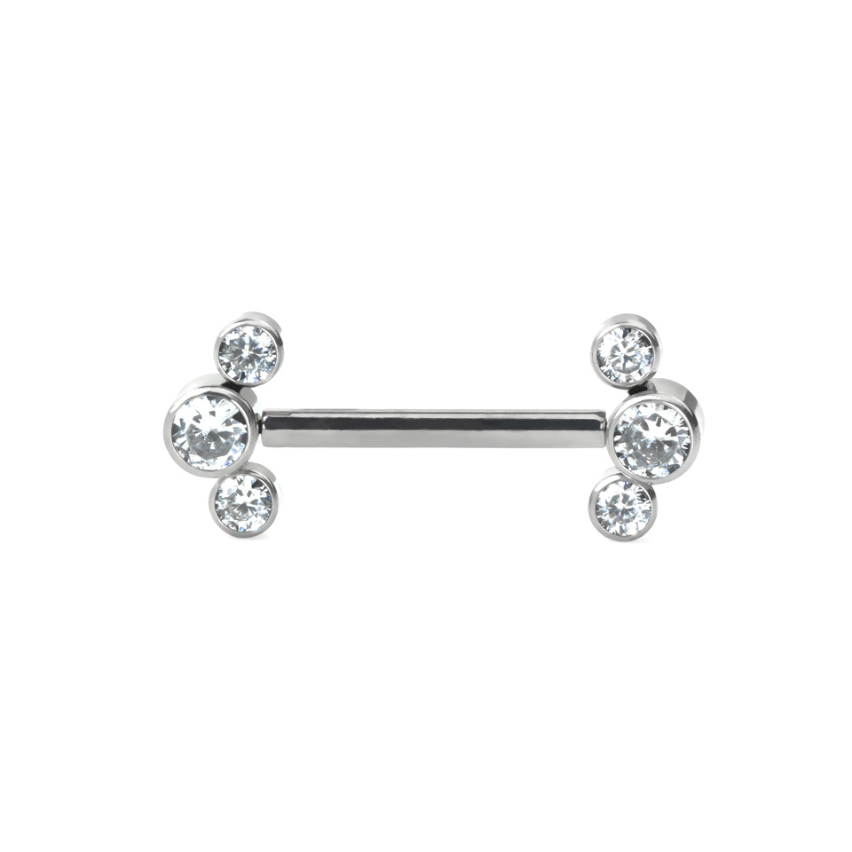 Gewindeloses Brustwarzen-Barbell mit 3 CZ Bezel Endstücke