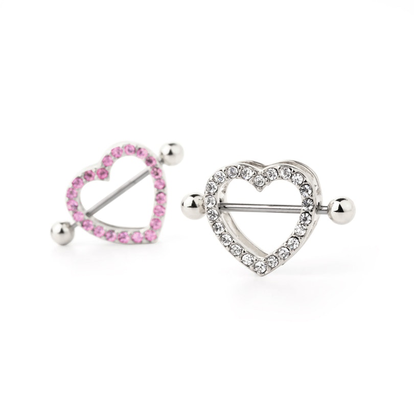 Herzförmiges Brustpiercing mit schimmernden Steinen