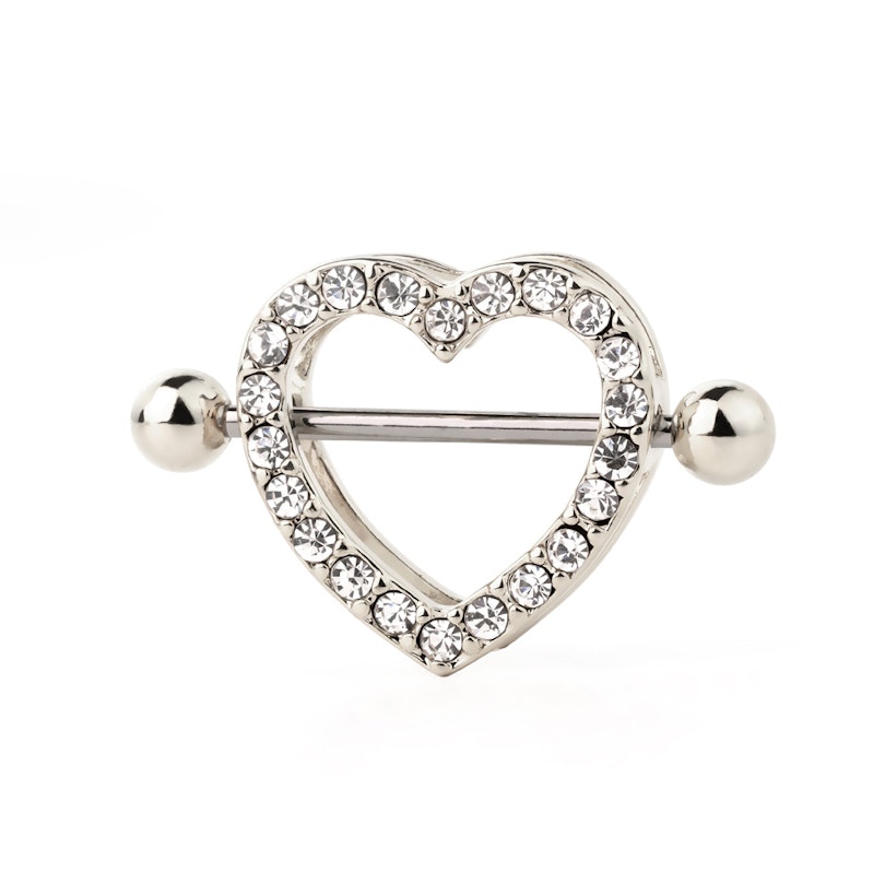 Name: Herzförmiges Brustpiercing mit schimmernden Steinen