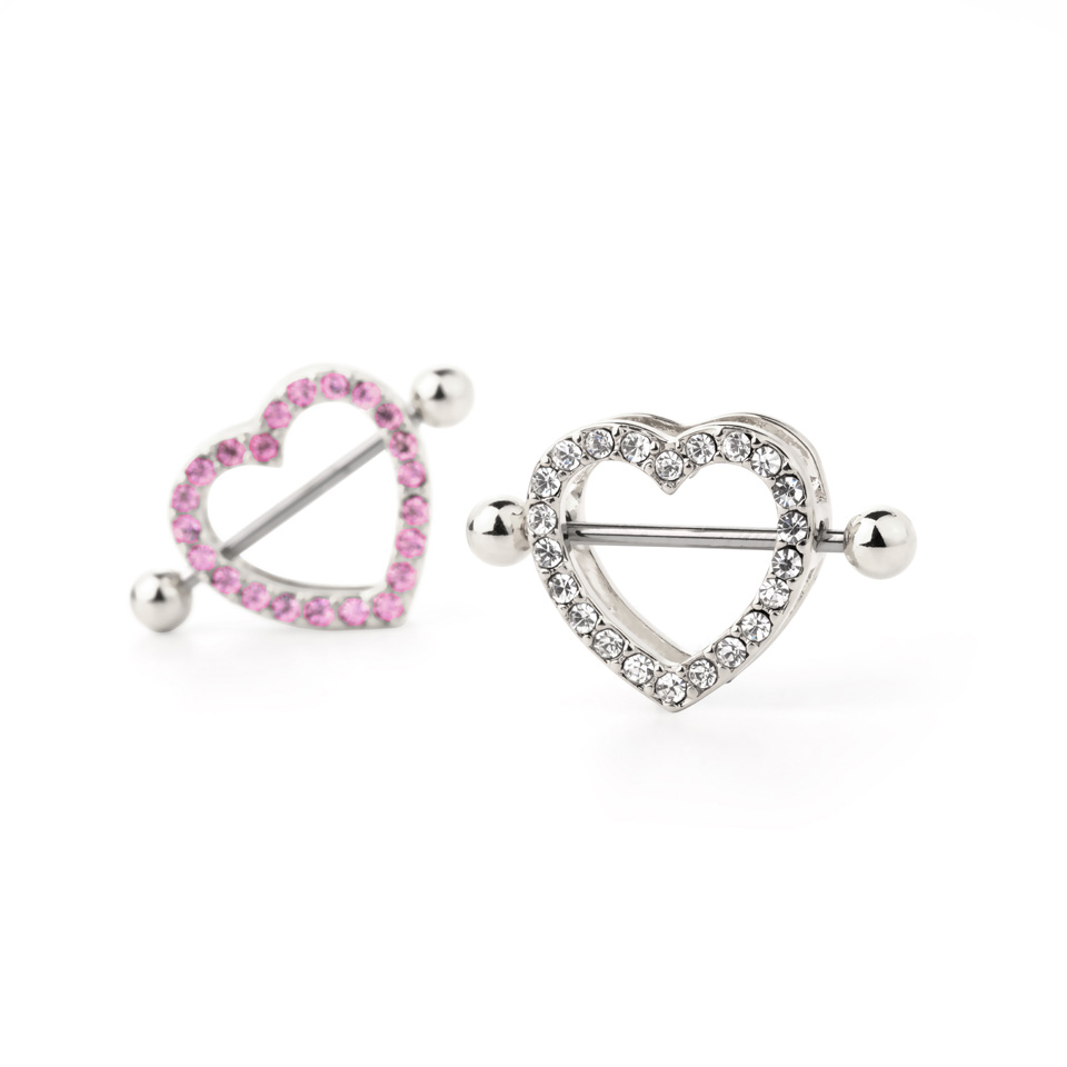 Name: Herzförmiges Brustpiercing mit schimmernden Steinen