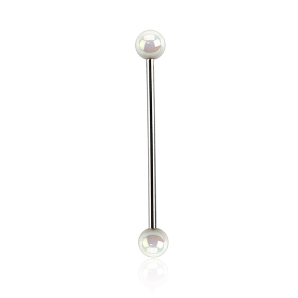 Industrialpiercings müssen nicht immer langweilig anzusehen sein, weil sie nur ganz schlichte Kugeln aus Metall haben. Hier haben wir nämlich einen Industrialstab mit Acrylkugeln, die jedoch einen metallischen Look haben. Durch die schöne Oberflächenbeschichtung erhalten diese Kugeln den speziellen Look und du kannst dir aus acht Farben deine Lieblingsfarbe auswählen.