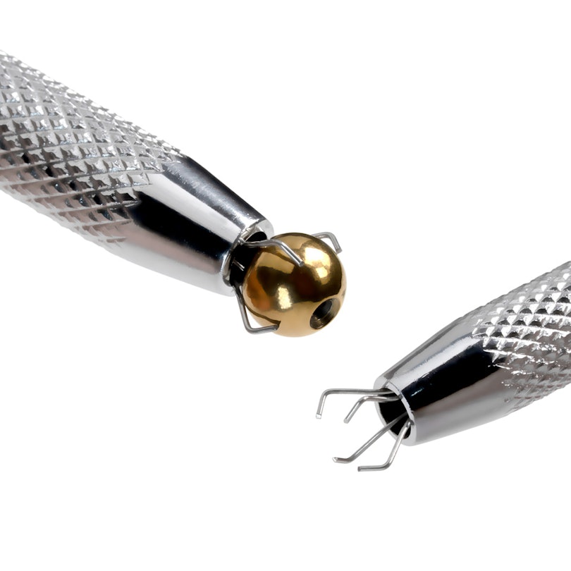 Fast alle kennen das Problem, wenn man gerade dabei ist seinen Piercingschmuck einzusetzen und die kleinen Kugeln plötzlich herunter fallen und man kann sie nicht mehr finden. Mit diesem praktischen Werkzeug kann man dieses Problem ganz einfach umgehen. Die Zange hat vier Greifarme, die ganz einfach ausgefahren werden, wenn man auf den kleinen Stift am Ende der Zange drückt - ähnlich wie bei einem Kugelschreiber. Die Greifarme umfassen die Kugel und fixieren diese sicher. Du musst nur darauf achten, dass die Kugel richtig herum gedreht ist, damit sie auch auf den Stab oder Ring geschraubt werden kann.