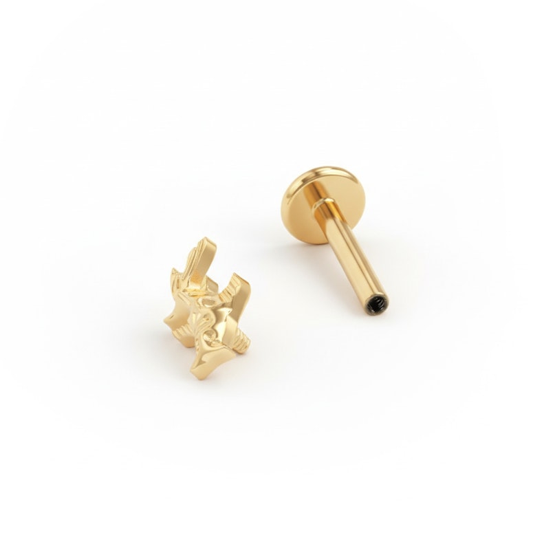 Die flache Rückseite passt für Conch-, Helix-, Ohrläppchen- oder Tragus-Piercings. Eine Erinnerung daran, dass du selbst im Chaos im Fluss bleiben kannst.