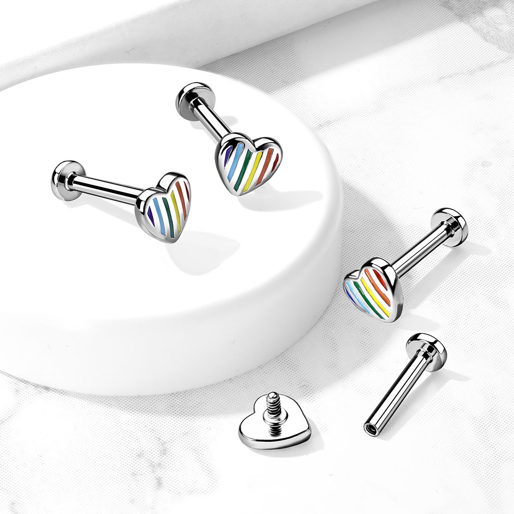 Name: Labret mit Innengewinde und einem Regenbogen Herz