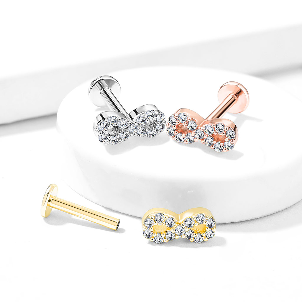Labret mit steinbesetztem Unendlichkeitszeichen und Innengewinde