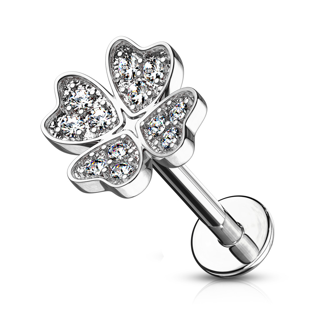 Labret mit steinbesetzten vierblättrigen Kleeblatt und Innengewinde